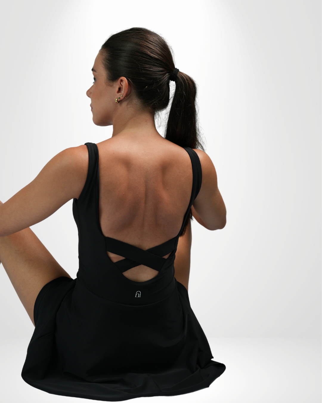 Play without limits. Sports dress with a criss-cross back, breathable fabric, and a practical inner pocket. Designed for your comfort and freedom of movement.
